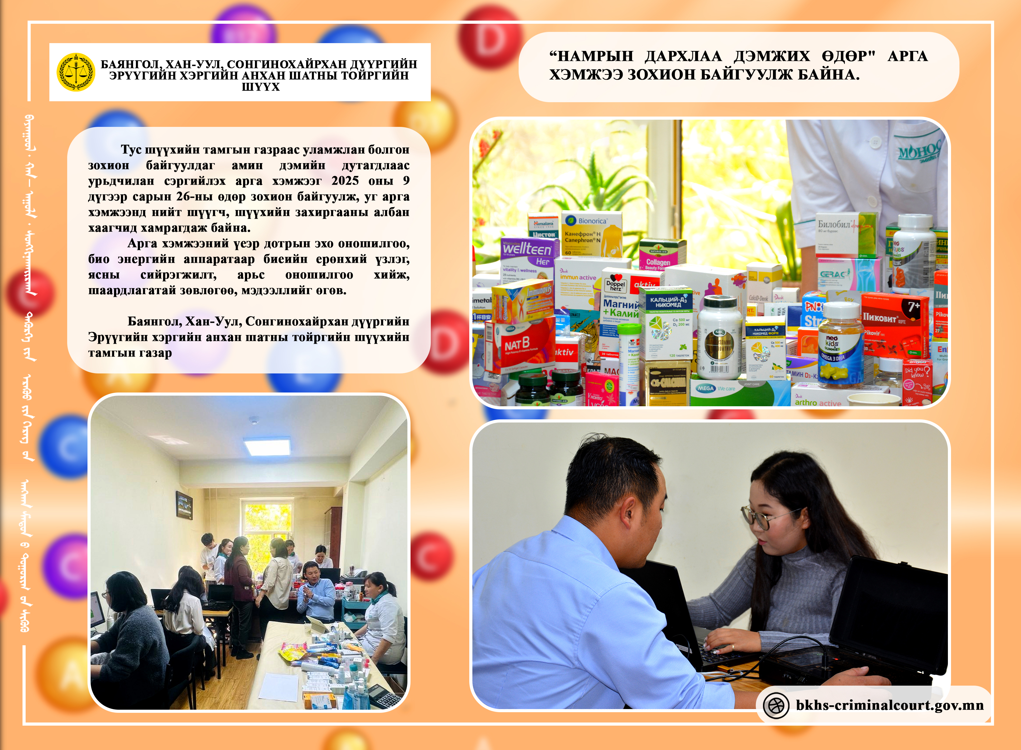 “НАМРЫН ДАРХЛАА ДЭМЖИХ ӨДӨР" АРГА ХЭМЖЭЭ ЗОХИОН БАЙГУУЛЛАА