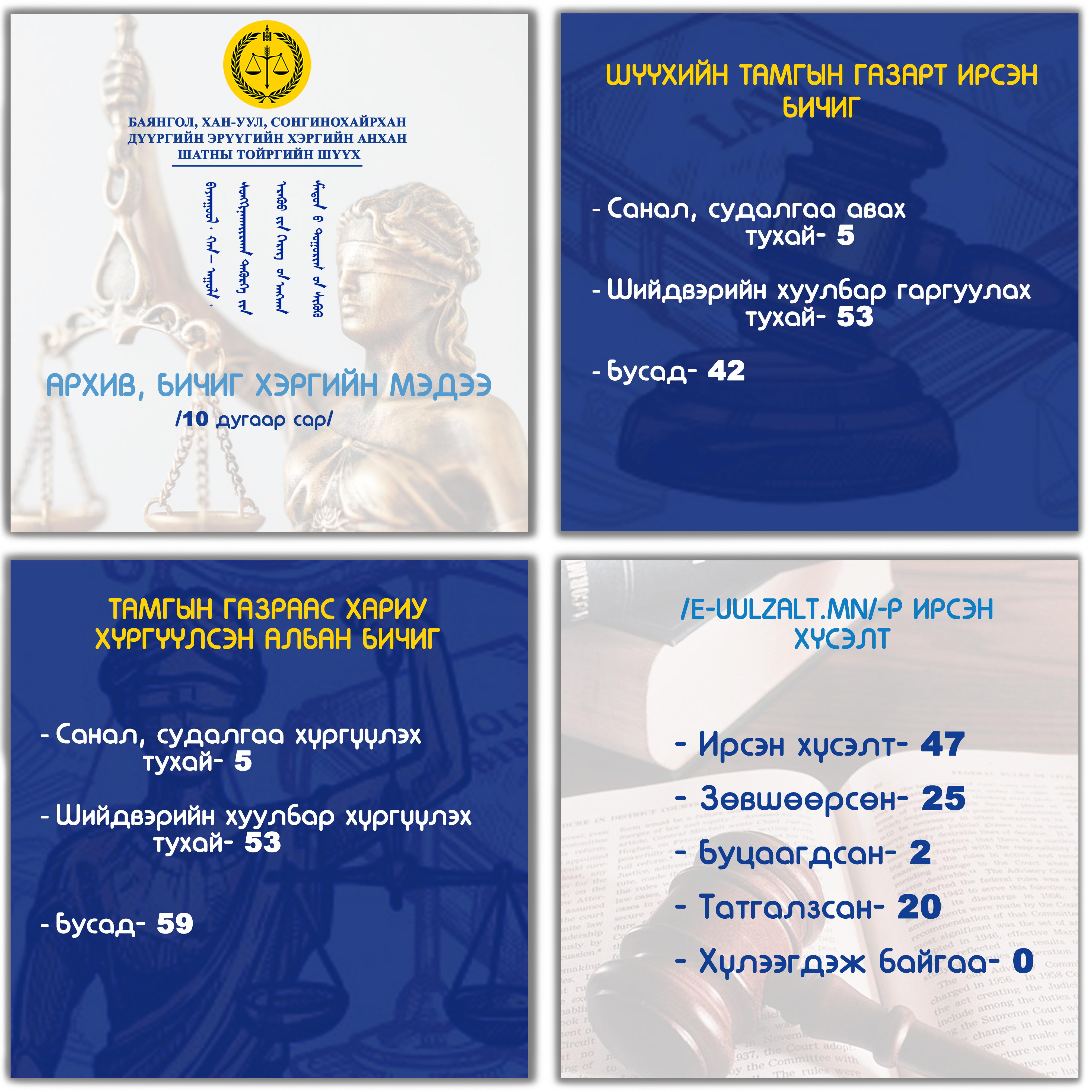 ШҮҮН ТАСЛАХ АЖИЛЛАГААНЫ МЭДЭЭ 2025 оны 10 дугаар сарын шүүн таслах ажиллагааны мэдээг танилцуулж байна.