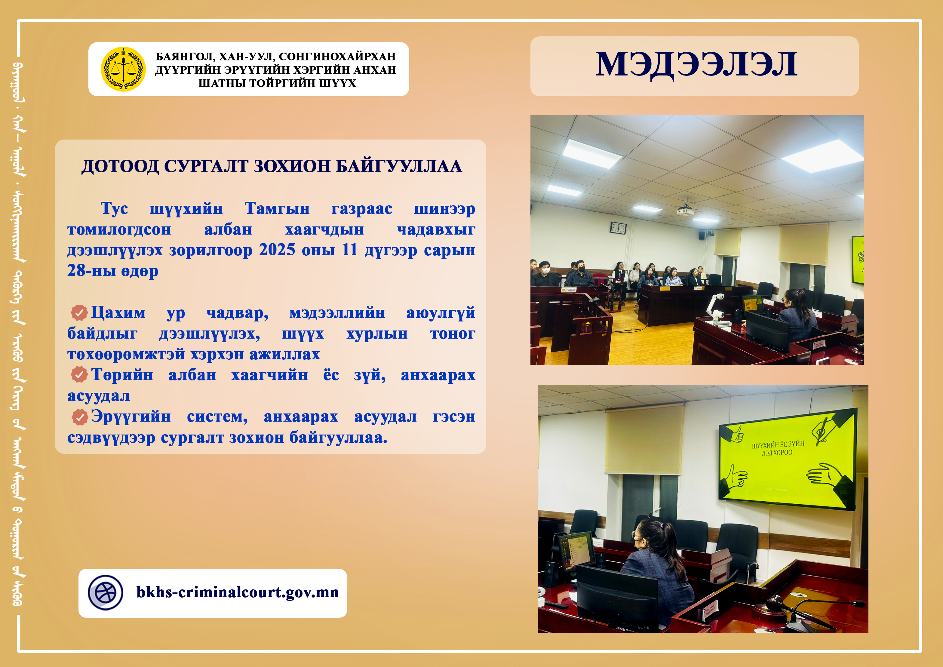 ШҮҮН ТАСЛАХ АЖИЛЛАГААНЫ МЭДЭЭ 2025 оны 10 дугаар сарын шүүн таслах ажиллагааны мэдээг танилцуулж байна.
