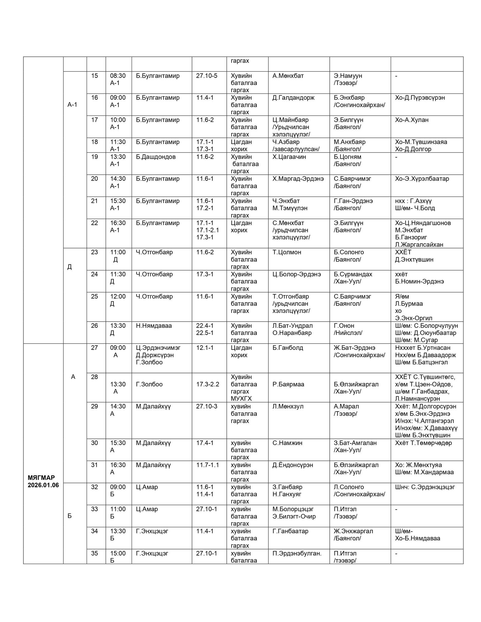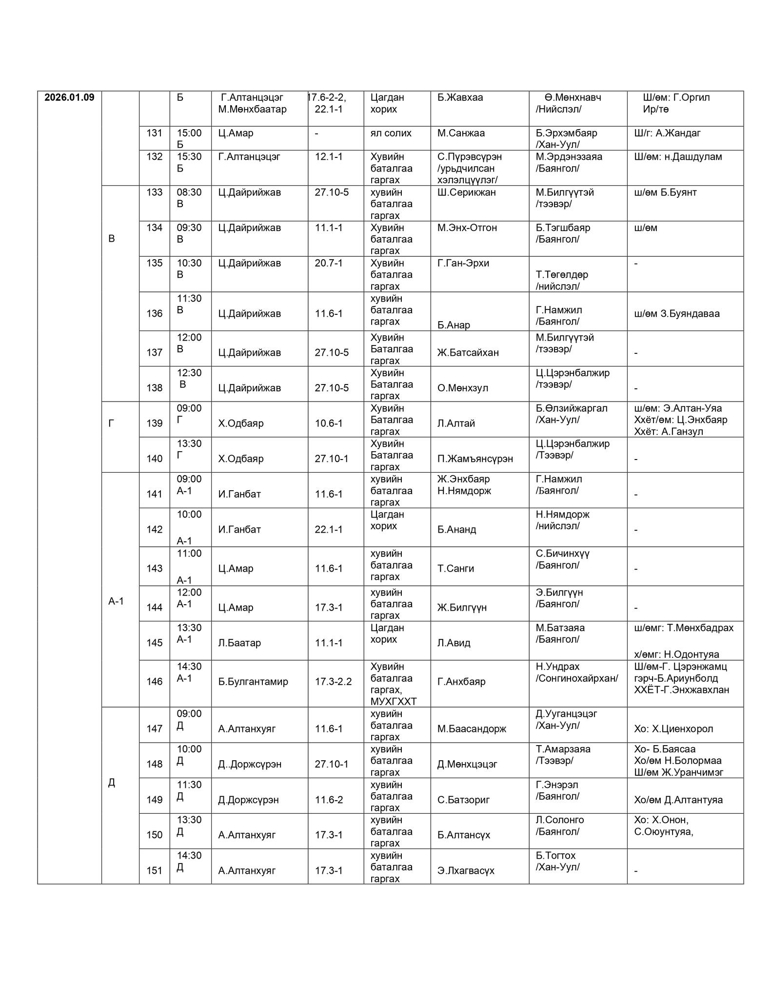 - БАЯНГОЛ, ХАН-УУЛ, СОНГИНОХАЙРХАН ДҮҮРГИЙН ЭРҮҮГИЙН ХЭРГИЙН АНХАН ШАТНЫ ТОЙРГИЙН ШҮҮХИЙН ШҮҮХ ХУРАЛДААНЫ ЗАР /2026.01.05-2026.01.09/
