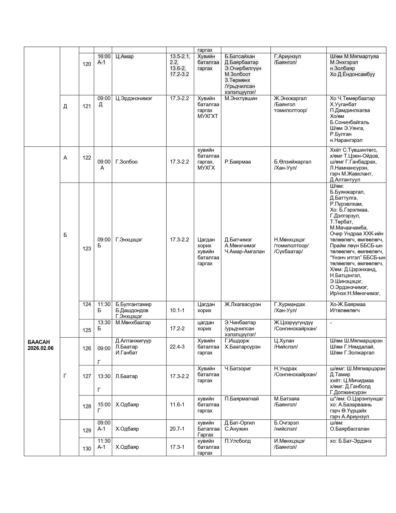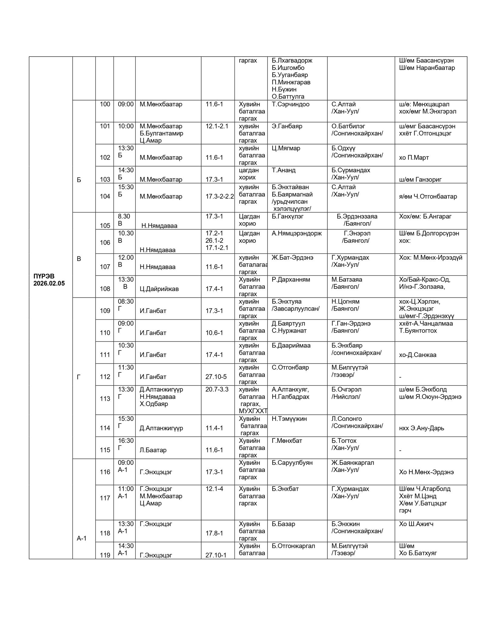 - БАЯНГОЛ, ХАН-УУЛ, СОНГИНОХАЙРХАН ДҮҮРГИЙН ЭРҮҮГИЙН ХЭРГИЙН АНХАН ШАТНЫ ТОЙРГИЙН ШҮҮХИЙН ШҮҮХ ХУРАЛДААНЫ ЗАР /2026.02.02-2025.02.06/