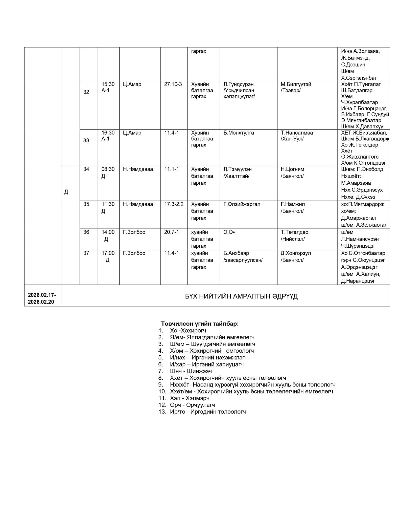 - БАЯНГОЛ, ХАН-УУЛ, СОНГИНОХАЙРХАН ДҮҮРГИЙН ЭРҮҮГИЙН ХЭРГИЙН АНХАН ШАТНЫ ТОЙРГИЙН ШҮҮХИЙН ШҮҮХ ХУРАЛДААНЫ ЗАР /2026.02.16-2025.02.20/