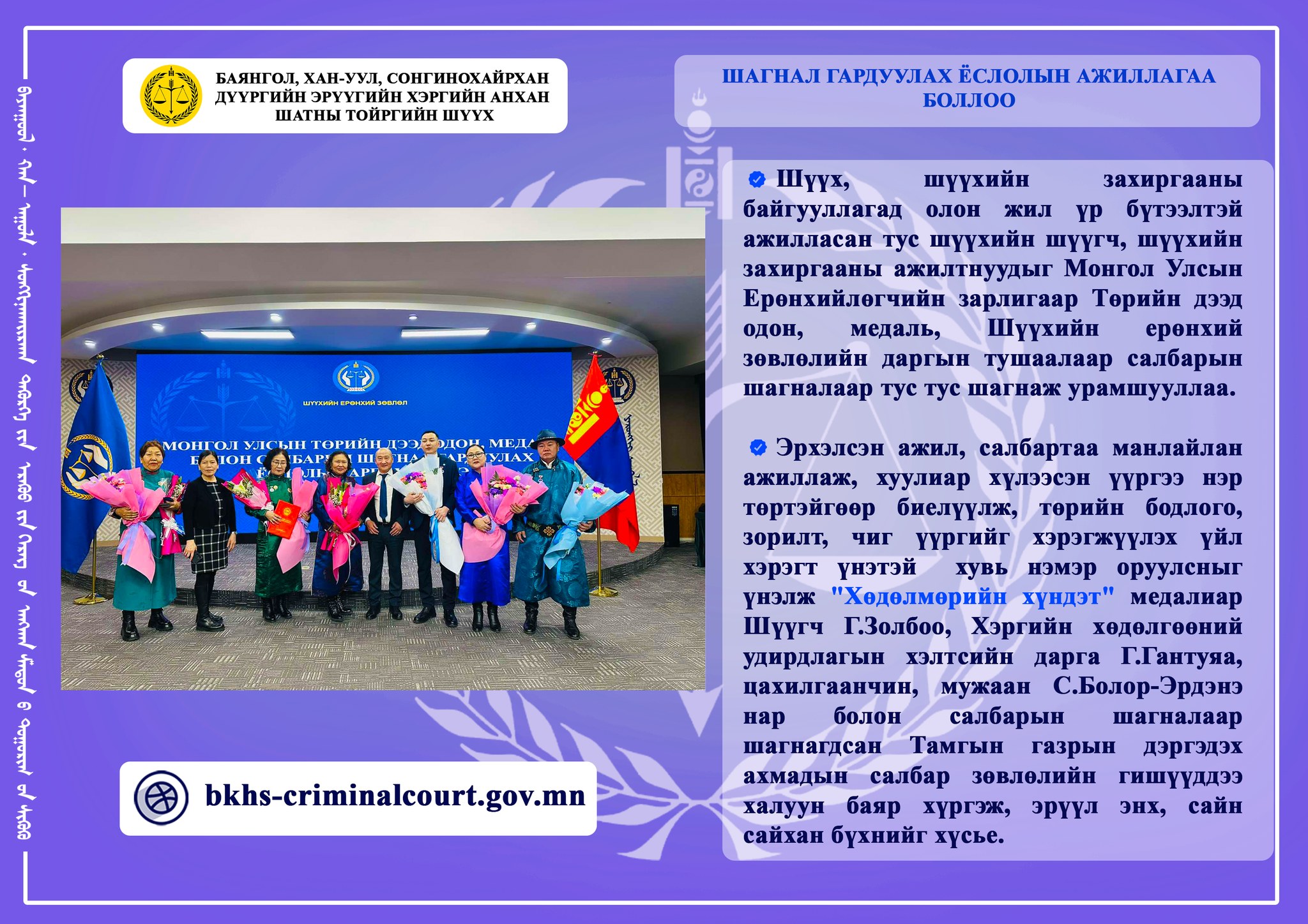 ШАГНАЛ ГАРДУУЛАХ ЁСЛОЛЫН АЖИЛЛАГАА БОЛЛОО