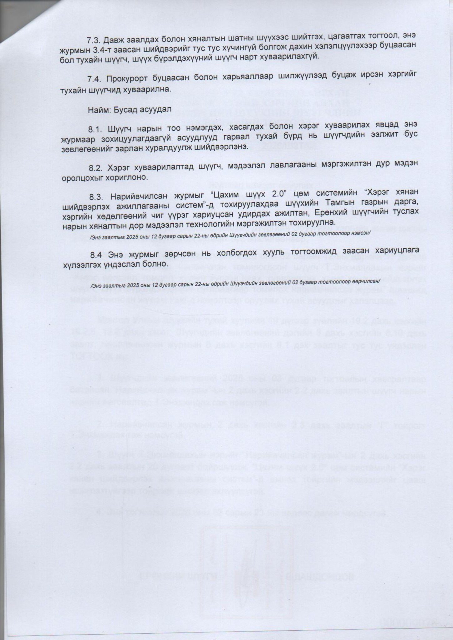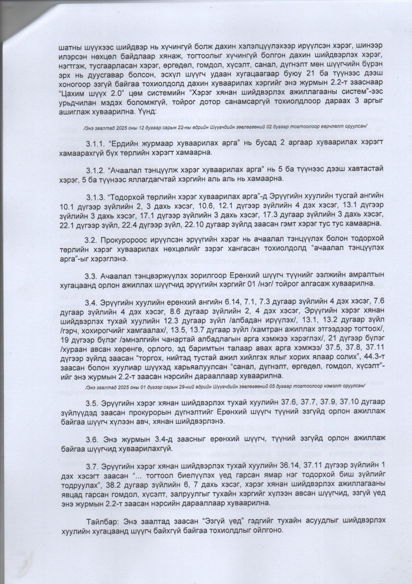 Баянгол, Хан-Уул, Сонгинохайрхан дүүргийн эрүүгийн хэргийн анхан шатны тойргийн шүүхийн шүүгчдийн зөвлөгөөний тогтоол