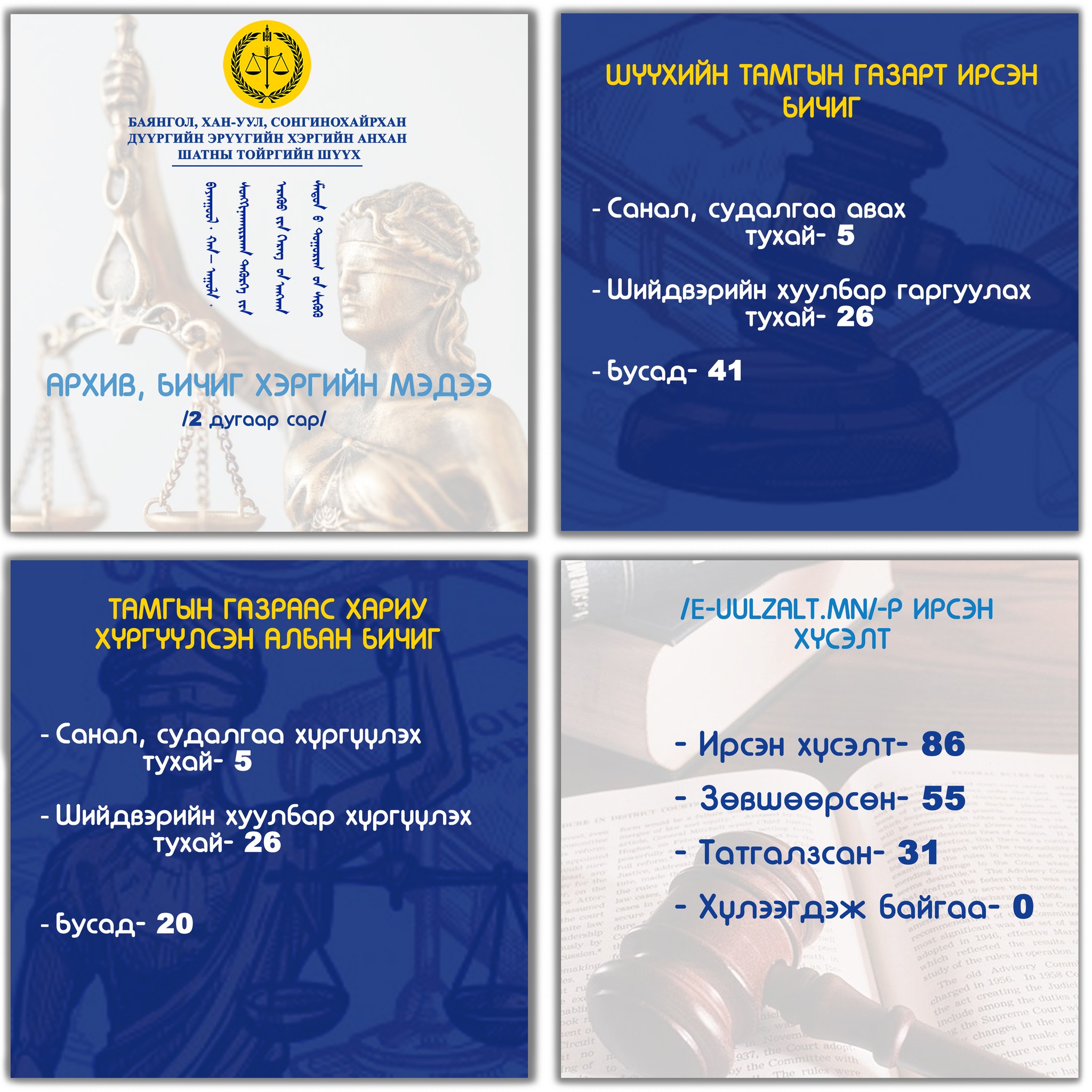 ШҮҮН ТАСЛАХ АЖИЛЛАГААНЫ МЭДЭЭ 2026 оны 2 дугаар сарын шүүн таслах ажиллагааны мэдээг танилцуулж байна.