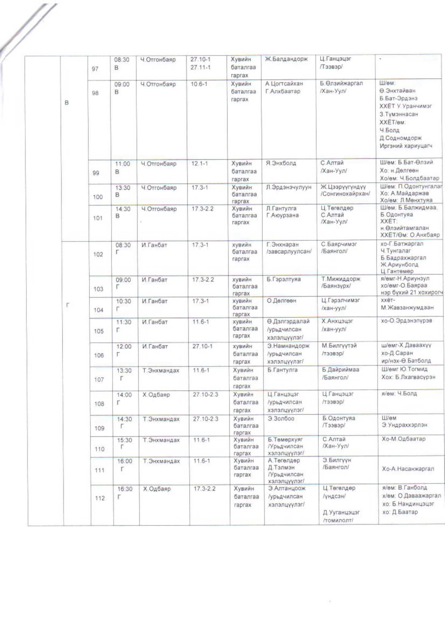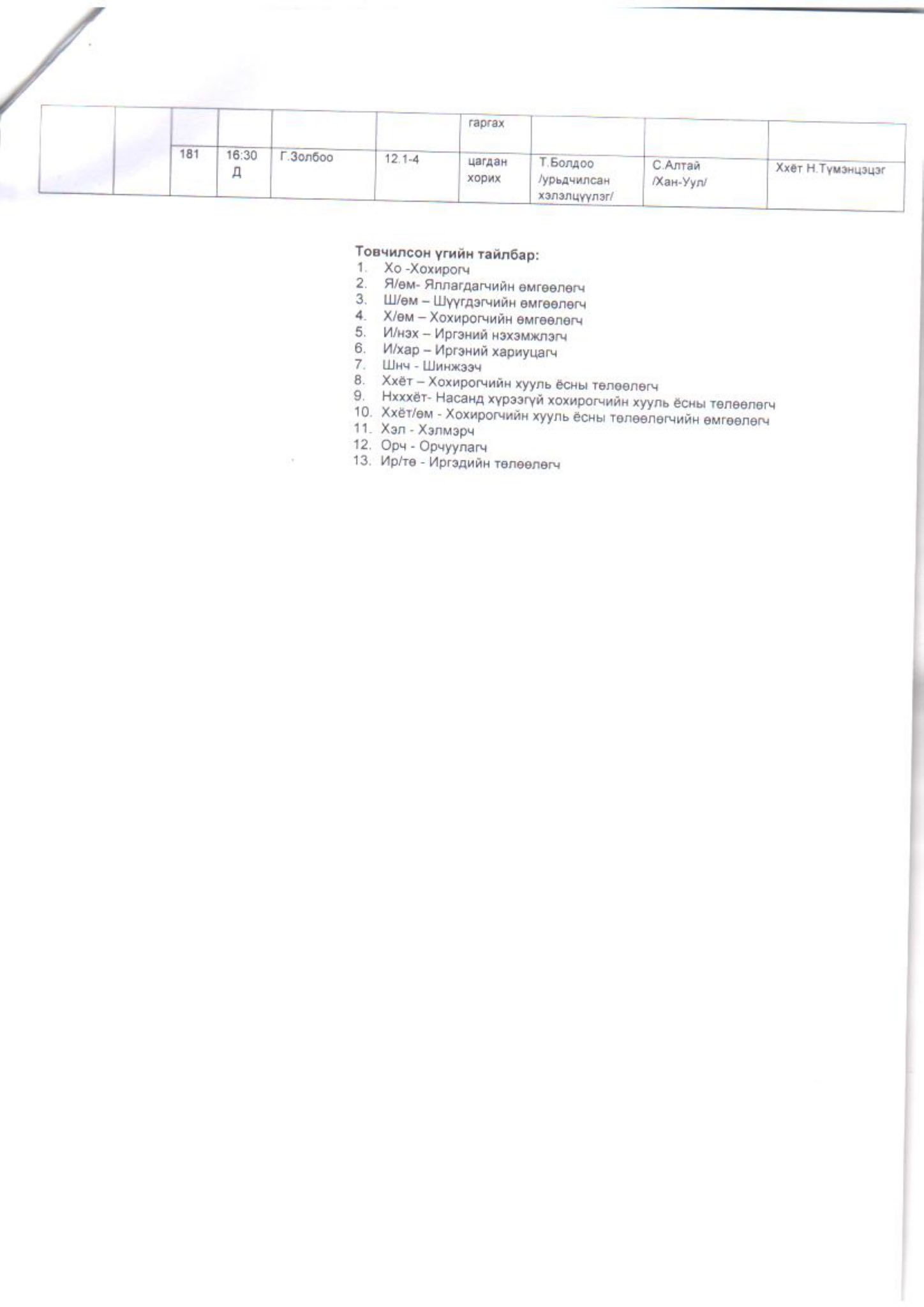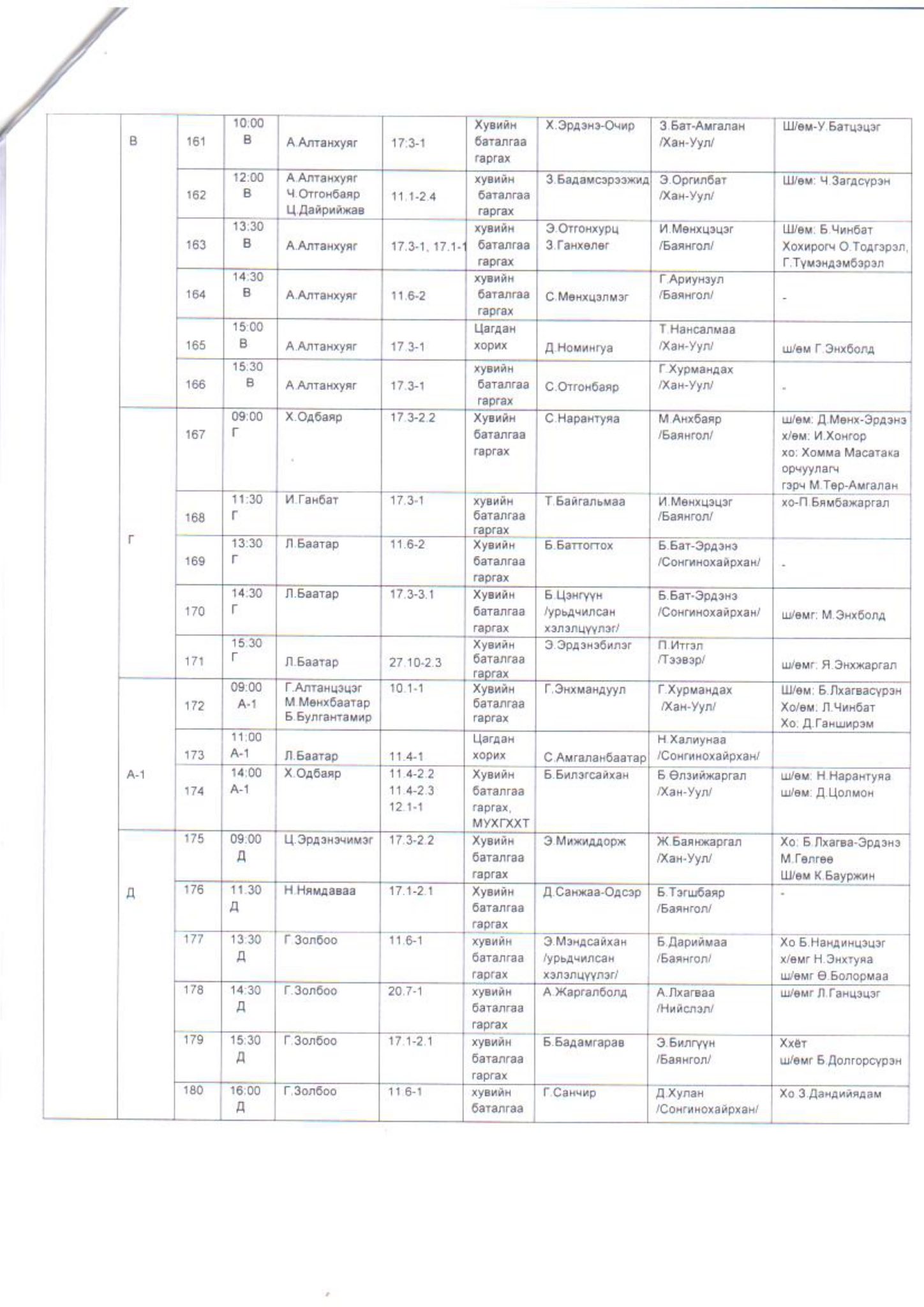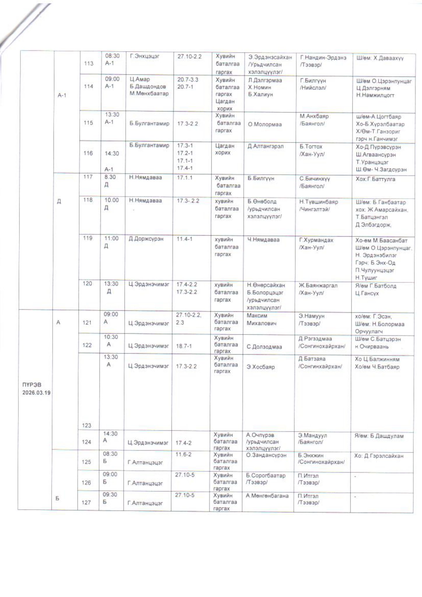 - БАЯНГОЛ, ХАН-УУЛ, СОНГИНОХАЙРХАН ДҮҮРГИЙН ЭРҮҮГИЙН ХЭРГИЙН АНХАН ШАТНЫ ТОЙРГИЙН ШҮҮХИЙН ШҮҮХ ХУРАЛДААНЫ ЗАР /2026.03.16-03.20/