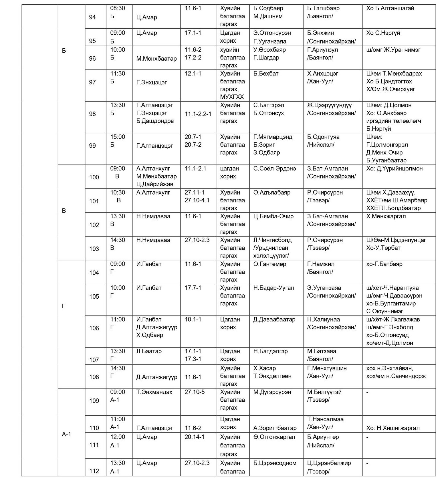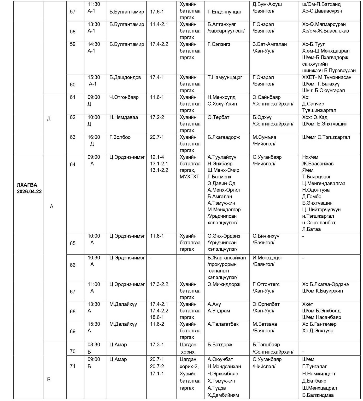 - БАЯНГОЛ, ХАН-УУЛ, СОНГИНОХАЙРХАН ДҮҮРГИЙН ЭРҮҮГИЙН ХЭРГИЙН АНХАН ШАТНЫ ТОЙРГИЙН ШҮҮХИЙН ШҮҮХ ХУРАЛДААНЫ ЗАР /2026.04.20-04.24/
